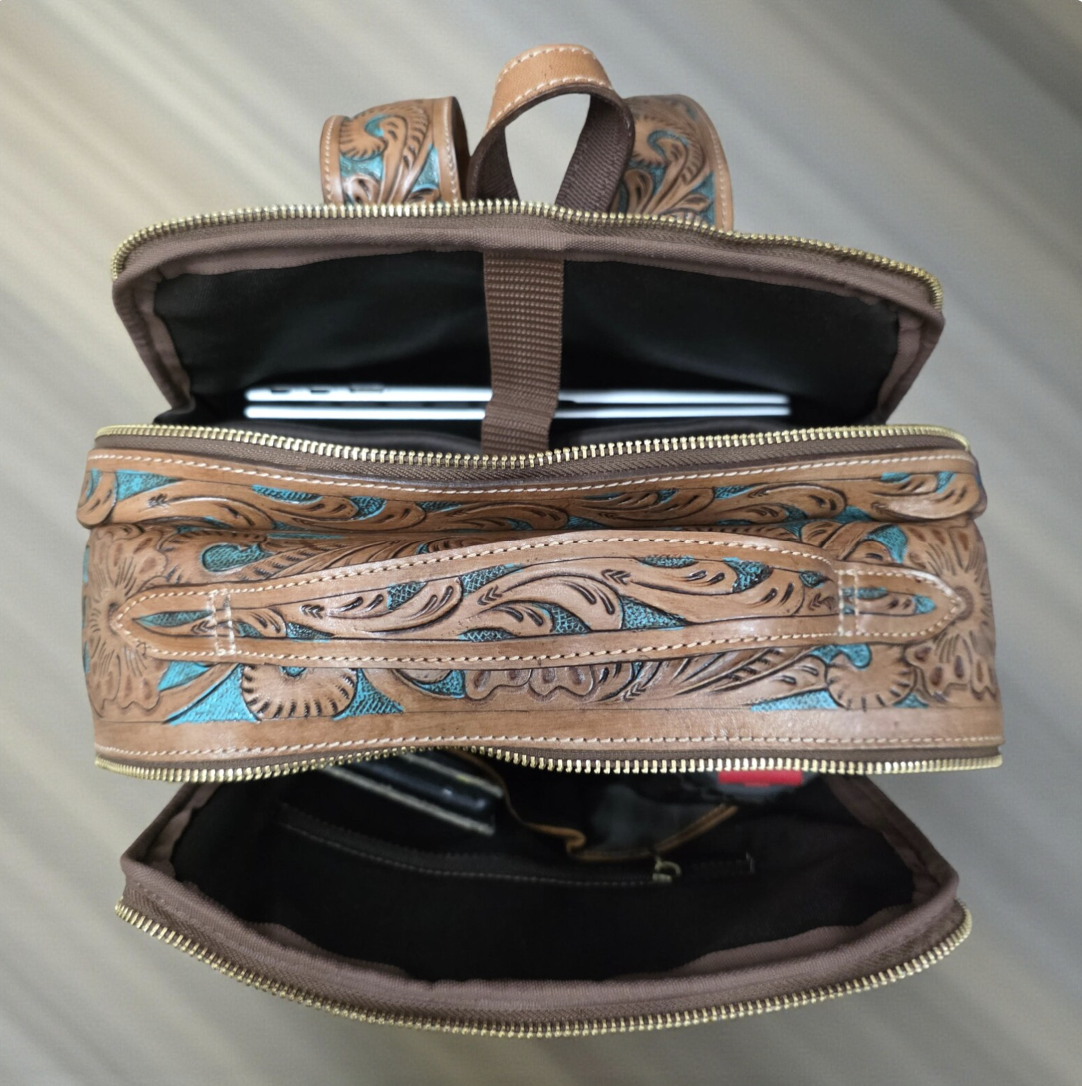 Stay classy with our handcrafted tooled backpack at Bombay Blossom.