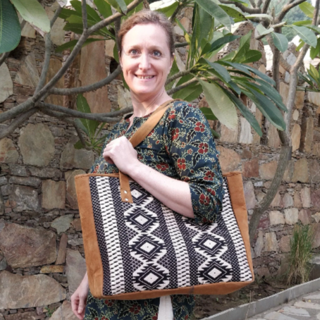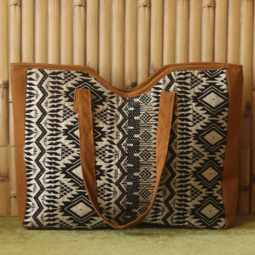 Stay organized with our Jacquard Leather Tote at Bombay Blossom.
