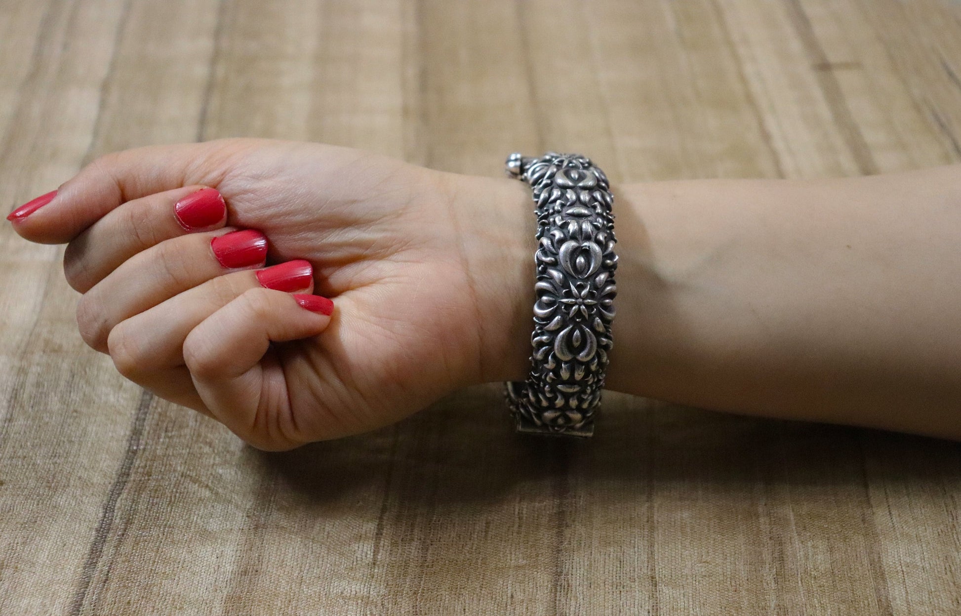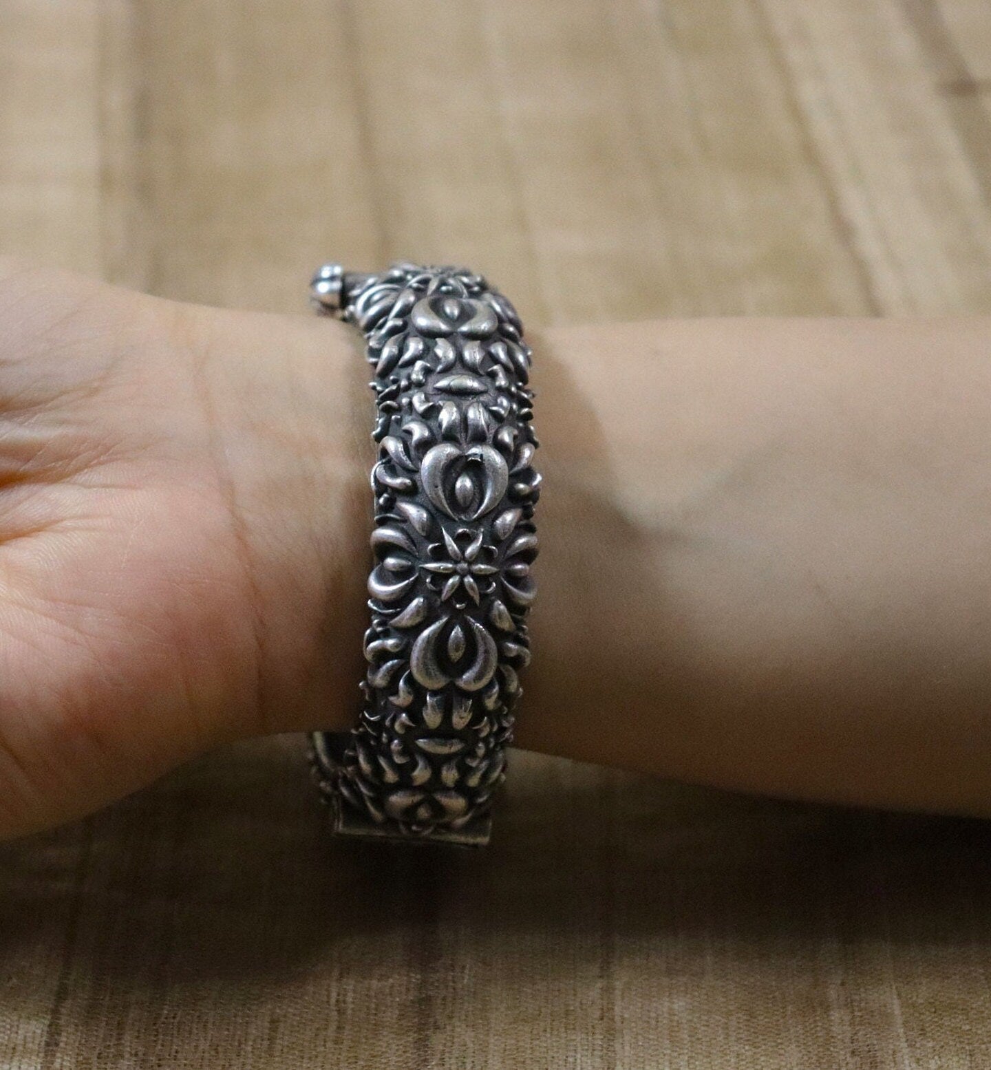 "This floral temple design bangle / bracelet is an antique allure.