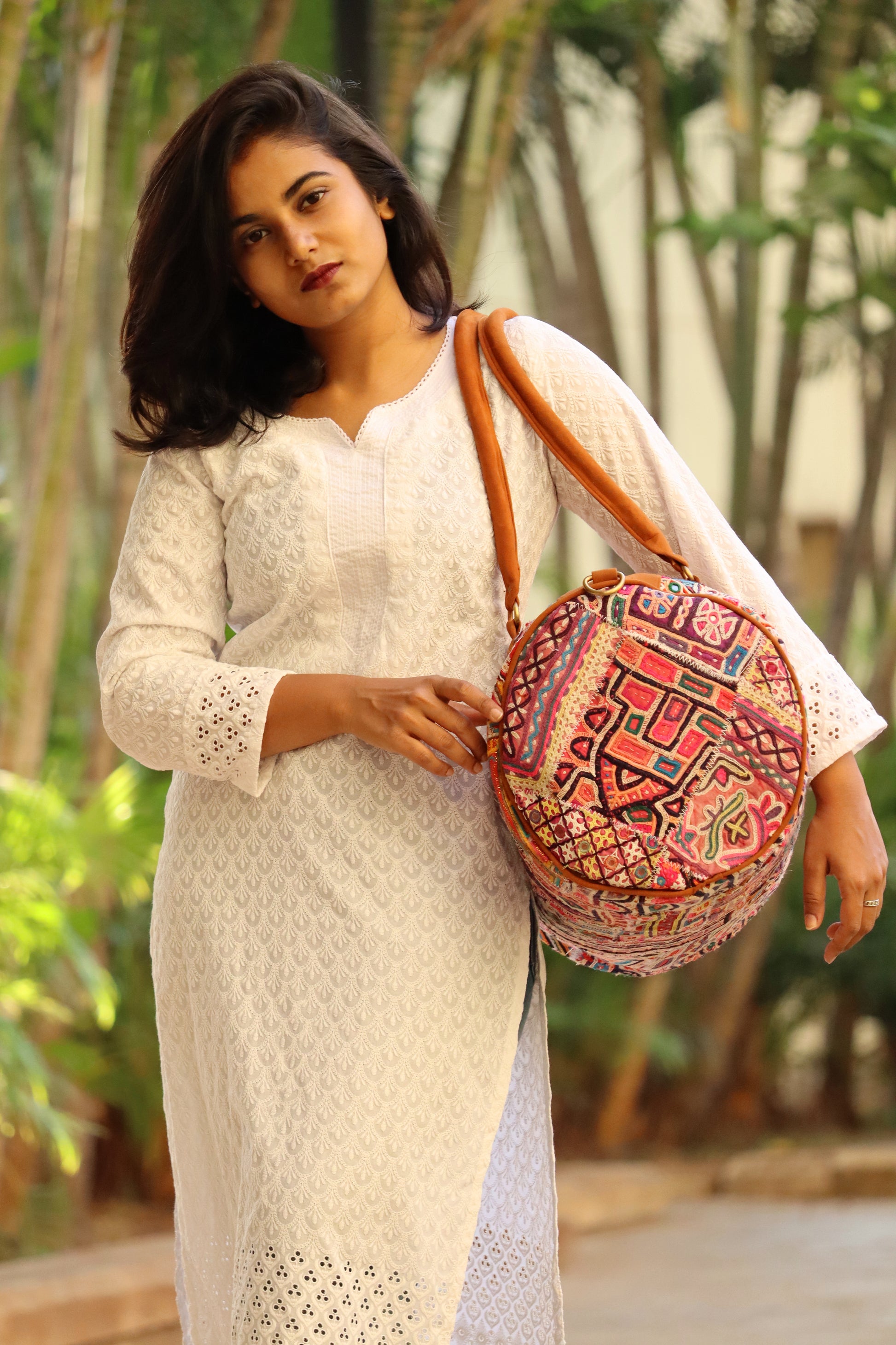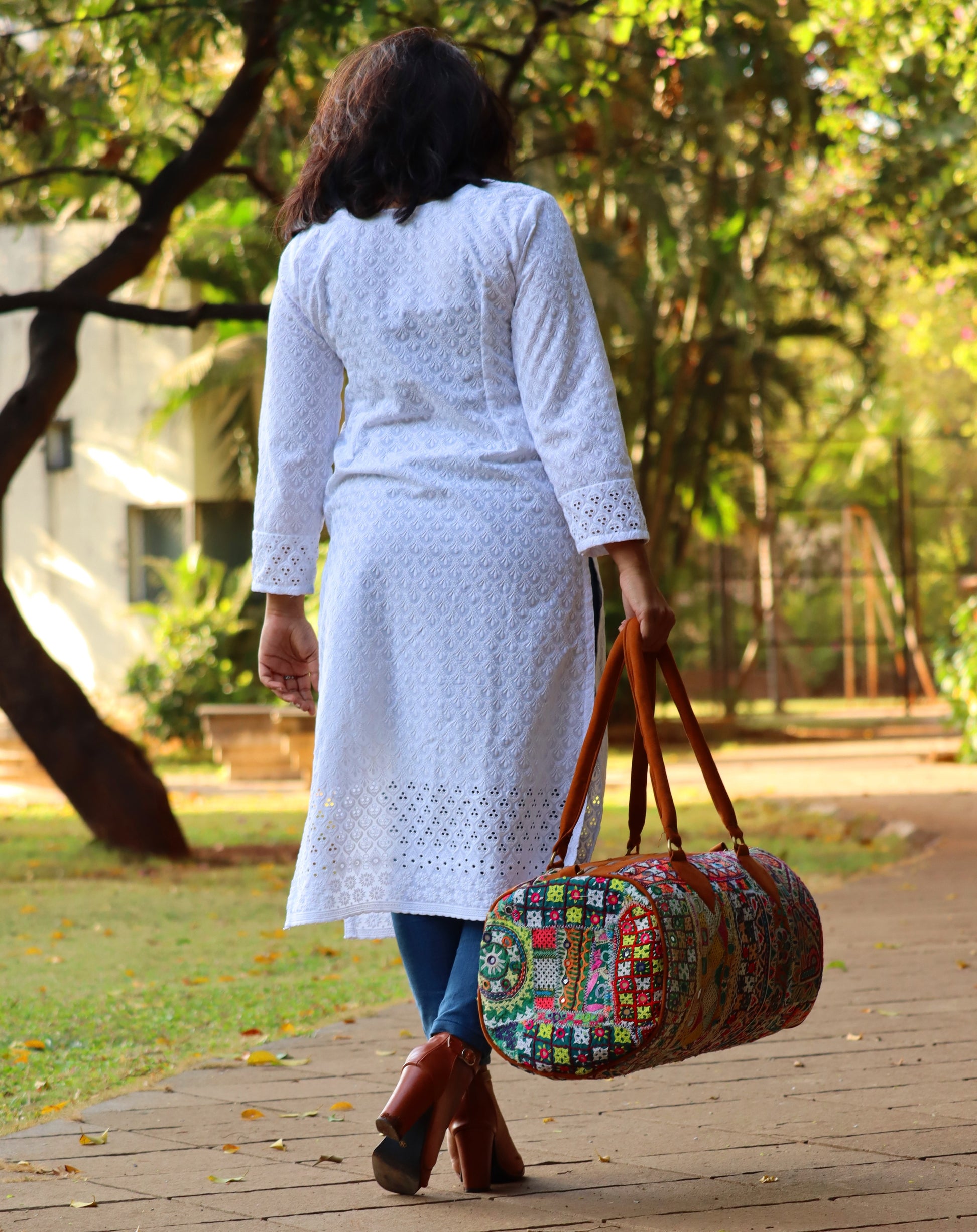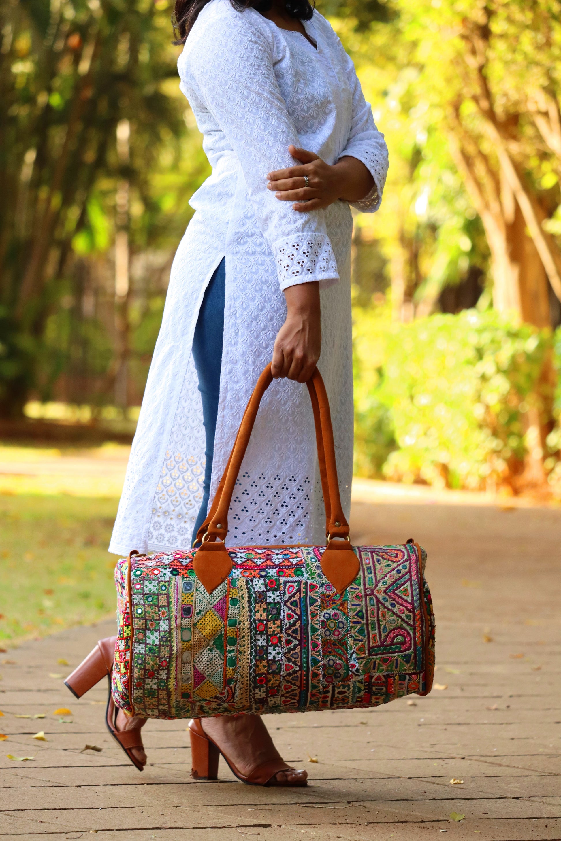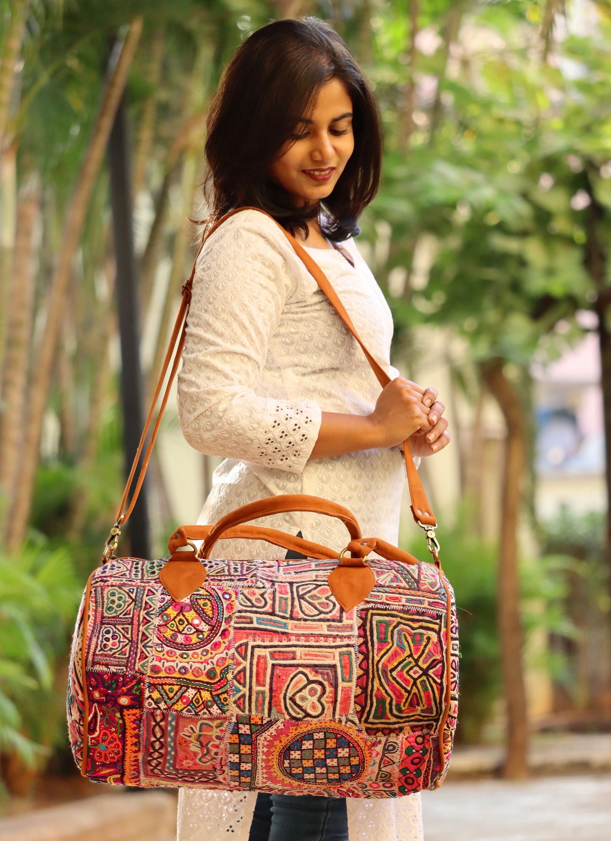 Stay classy with our handcrafted large duffel bag at Bombay Blossom.
