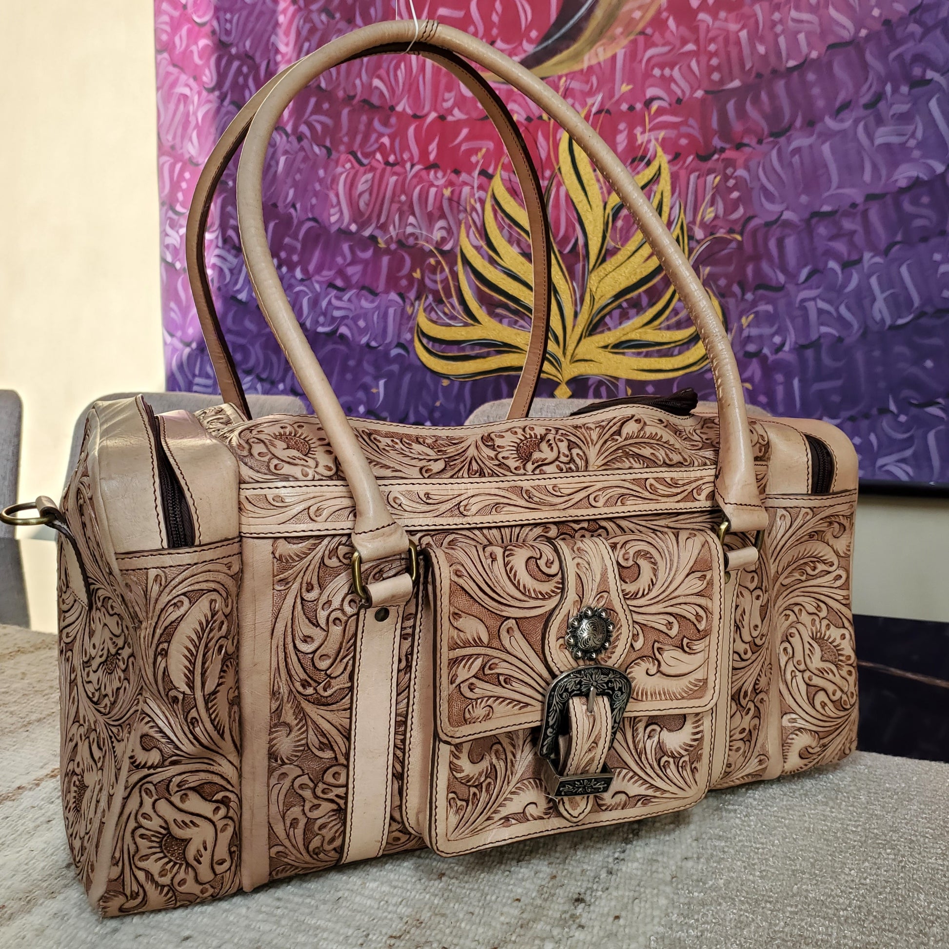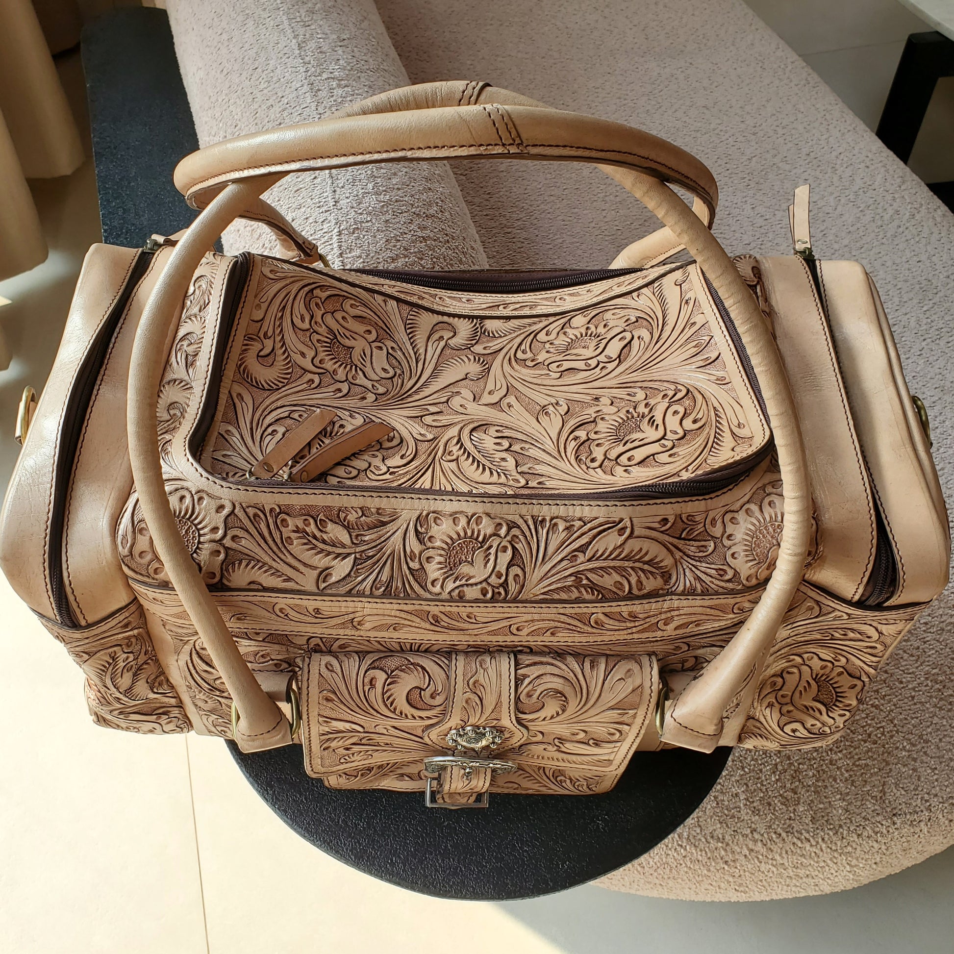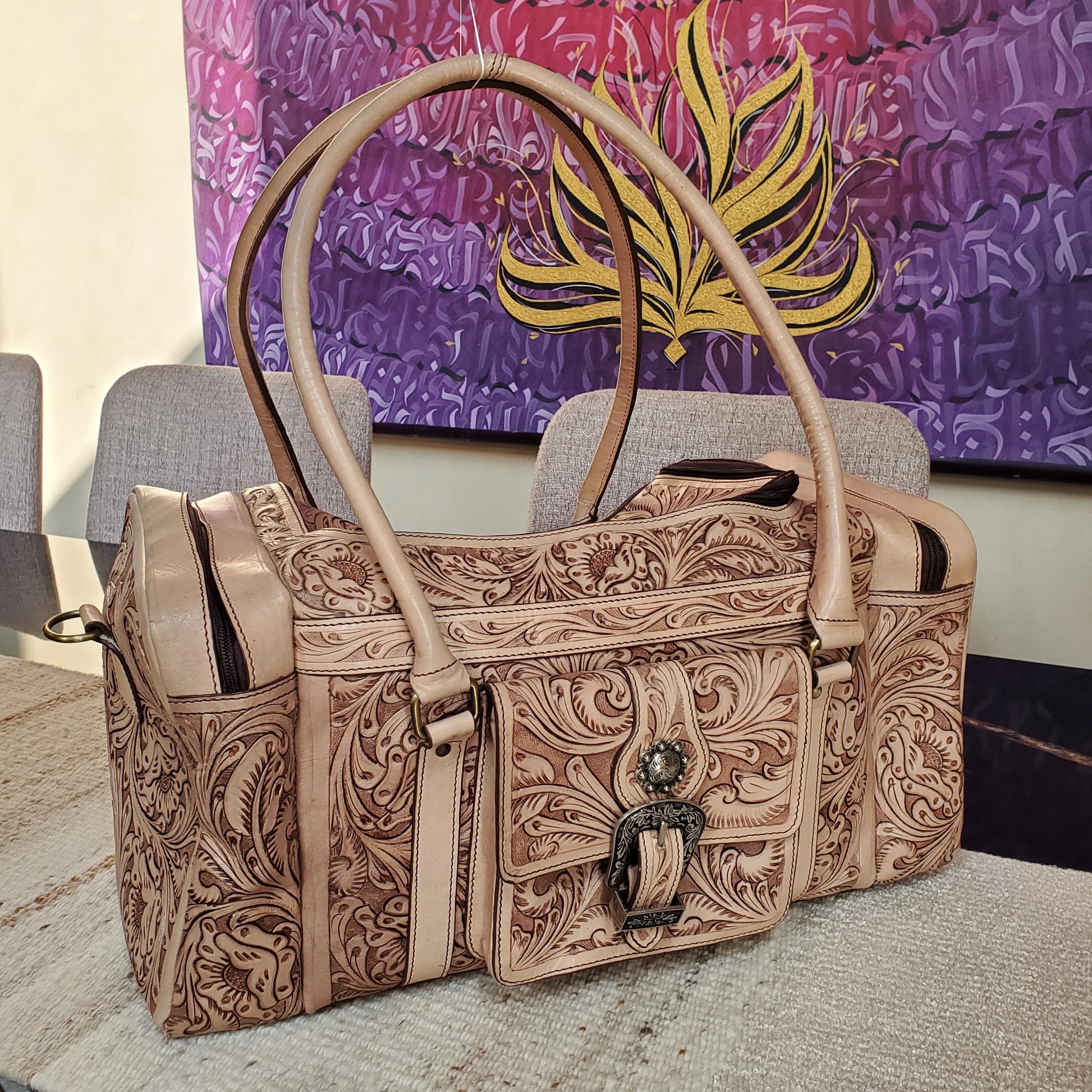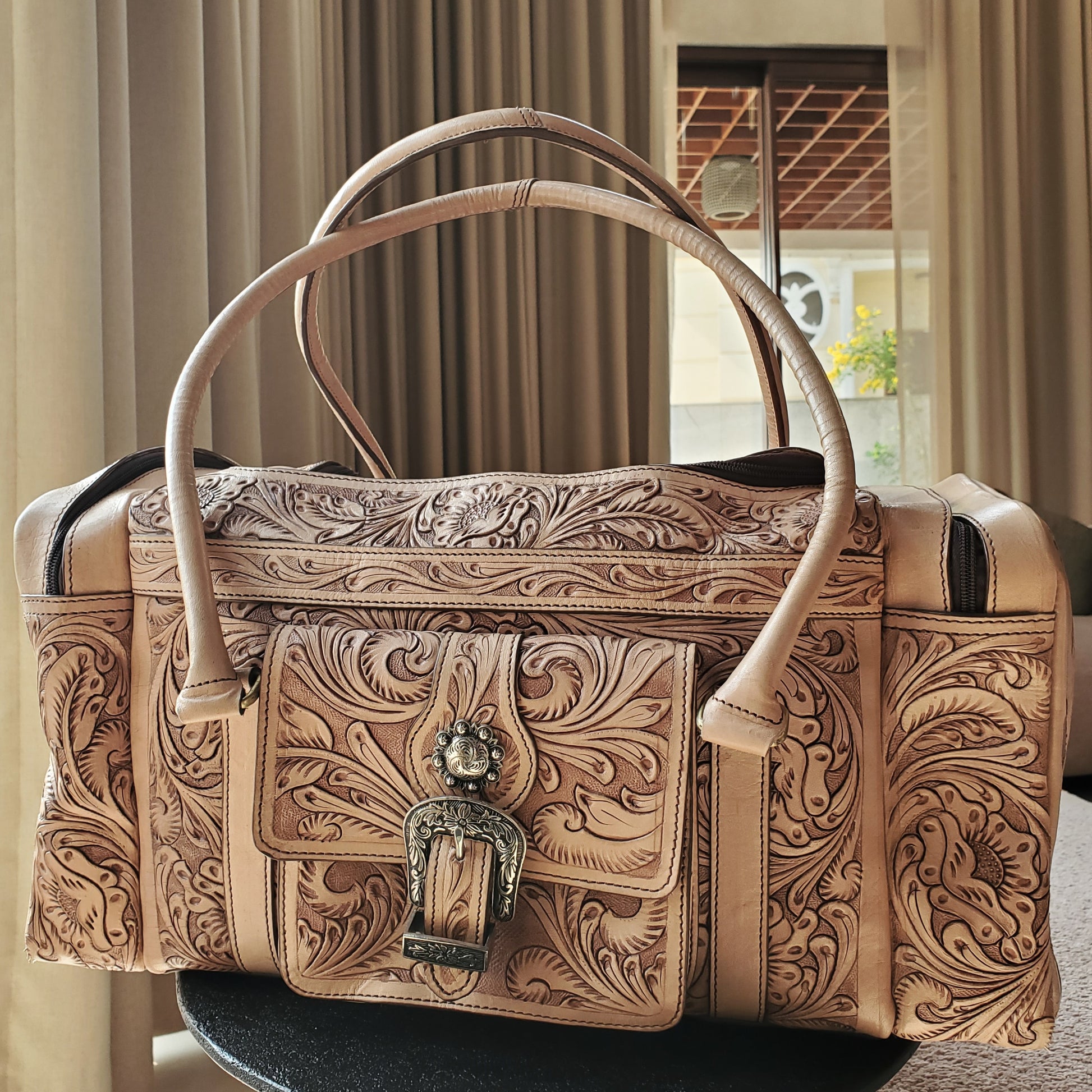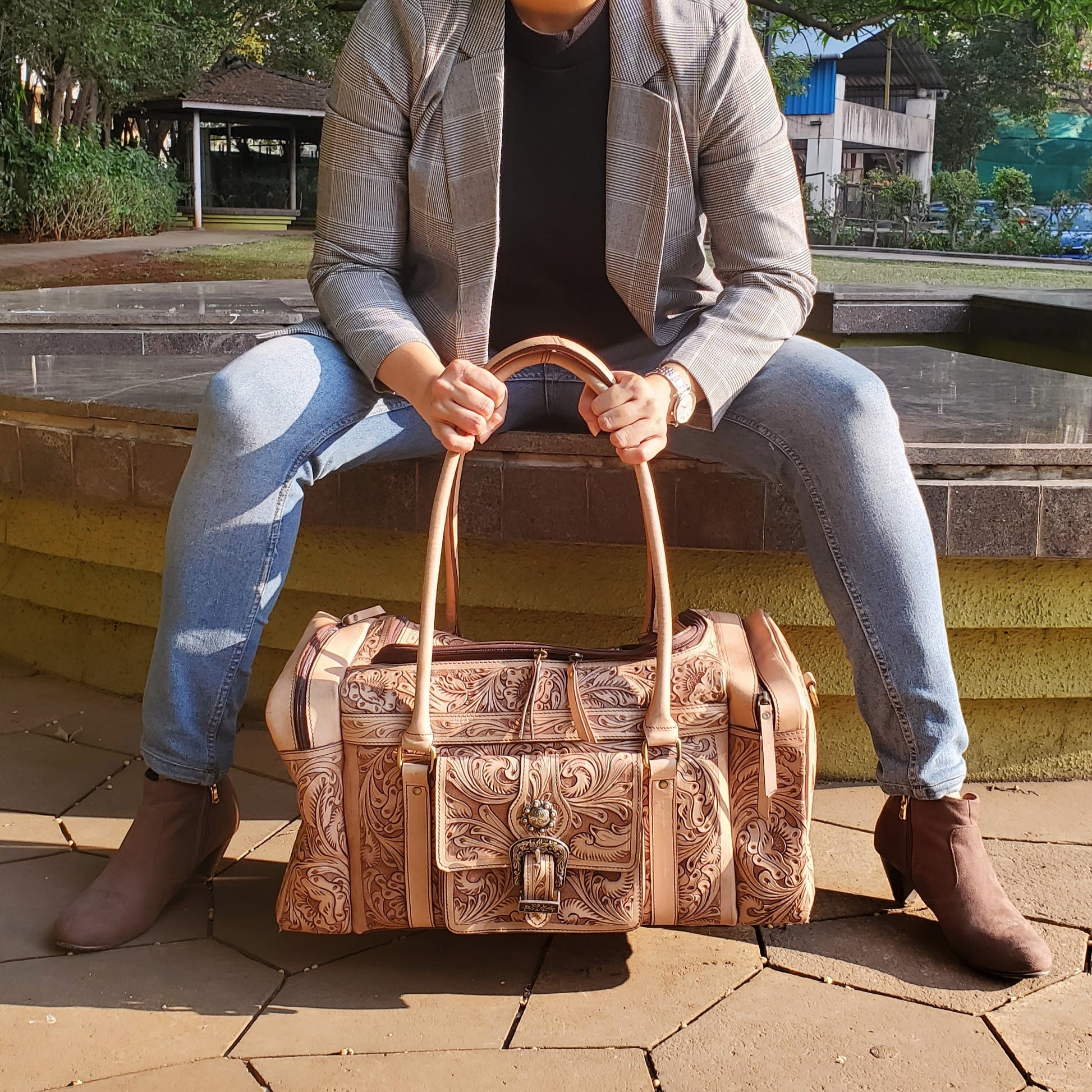 Stay organized with our exclusive premium Hand tooled Overnight duffel bag at Bombay Blossom.